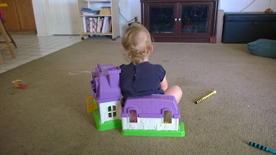 At Rachel's house Audrey kept saying "I need to go to the bathroom", then she would back herself onto this little toy house. Turns out there was a tiny toilet in there that she was "using". It was hilarious!